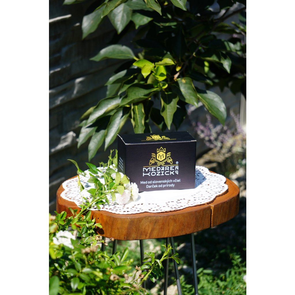In die Box können Sie aus unserem breiten Sortiment wählen: aromatisierte Honige, Kräuterhonige, duftende Kerzen, Propolis oder kleinere Honigpackungen – ideal zum Verschenken.