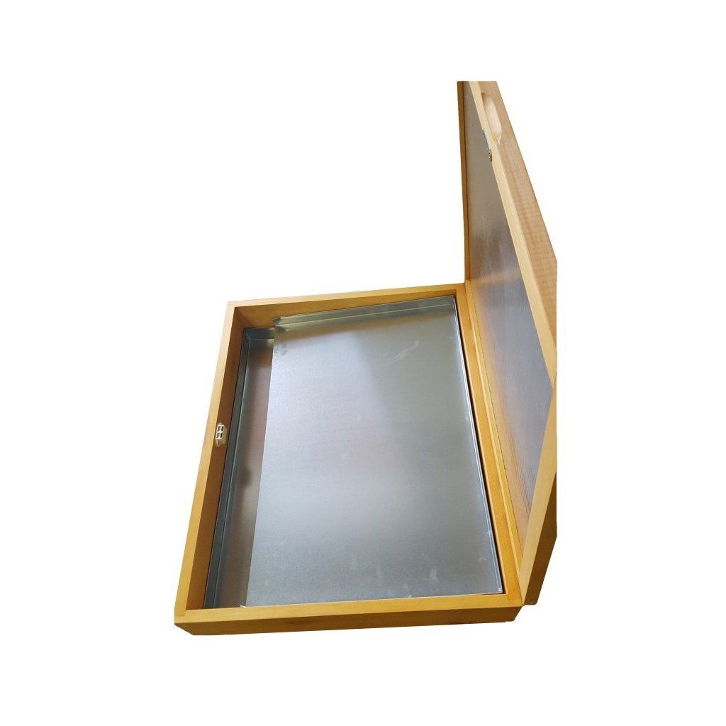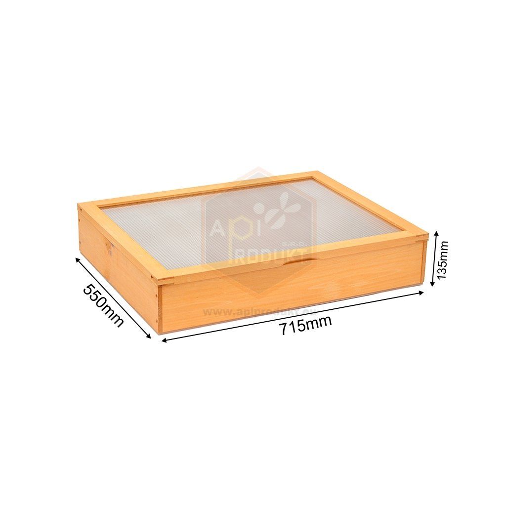 Der Solar-Wachsschmelzer aus Edelstahl mit Holzgehäuse wird zur Gewinnung von Wachs aus Bienenwaben mithilfe von Sonnenenergie verwendet. Der Wachsschmelzer verfügt über ein lackiertes Holzgehäuse, das Innere besteht aus Edelstahlblech, und der obere Deckel ist aus Polycarbonat gefertigt.