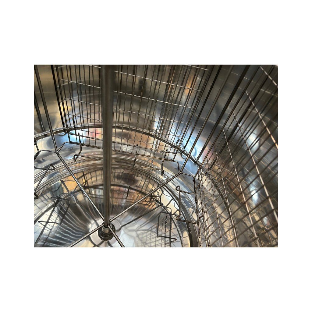 Bei der tangentialen Schleuder werden die Bienenrahmen horizontal eingesetzt, sodass der Honig von beiden Seiten geschleudert werden kann. Dank des ergonomisch gestalteten Griffs ist die Schleuder einfach und bequem zu bedienen.