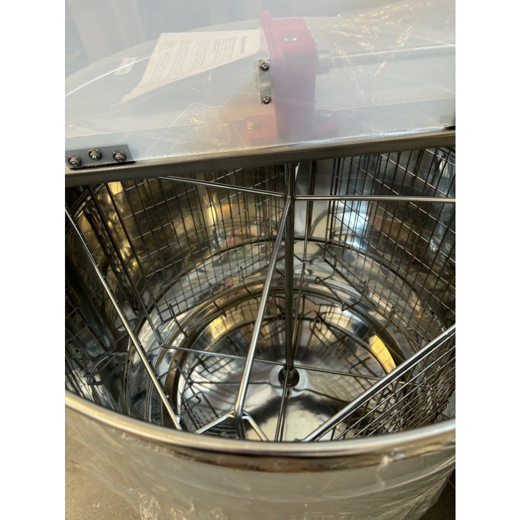Tangentialer Honigschleuder T-4 Rahmen, Antikora, Handbetrieb (Tschechoslowakei, B-Rahmen und Dadant) ist ein zuverlässiges und umweltfreundliches Werkzeug zum Schleudern von Honig aus den Bienenwaben. Sie ist so konzipiert, dass sie einfach zu bedienen ist und effizient den Honig aus den Bienenrahmen entfernt. Durch den Handbetrieb benötigt sie keine elektrischen Anschlüsse oder andere Energiequellen und ist somit umweltfreundlich.