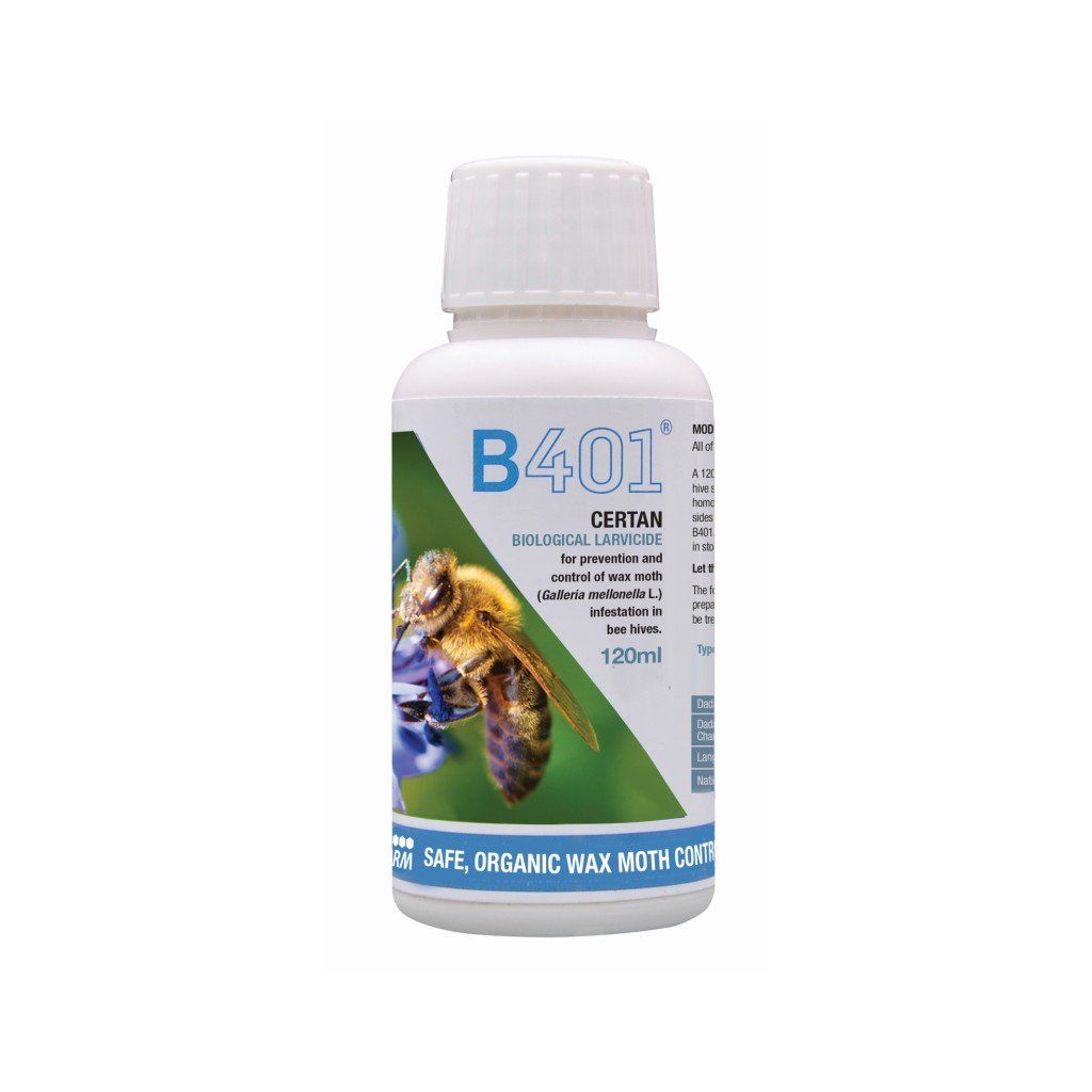 B401 hinterlässt keine Rückstände in Wachs und Honig, im Gegensatz zu Paradichlorbenzol, das giftig ist und im Vereinigten Königreich für die landwirtschaftliche Verwendung verboten ist. B401 ist für Bienenlarven und erwachsene Bienen unschädlich. Der in B401 enthaltene Aizawai-Serotyp 7 ist der einzige aus der Bacillus thuringiensis-Palette und hat ausgezeichnete Ergebnisse gegen Blattlaus-Thripse.